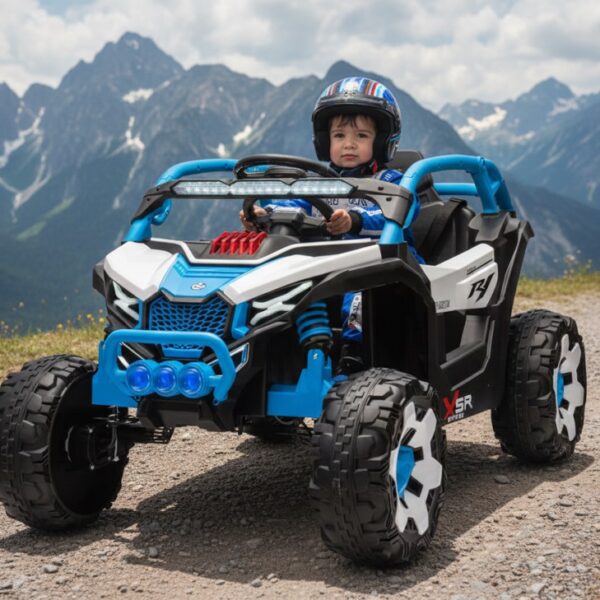 Sus detalles decorativos, como luces frontales y gráficos coloridos, hacen que la moto resulte aún más atractiva para los niños. Fabricada con materiales resistentes y pensados para el uso infantil, esta moto es una excelente opción como primer vehículo a batería.